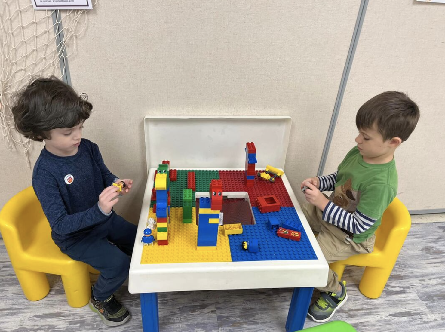 During the circle/center time each child has some time to “pretend” play and act out adventures with their classmates while still keeping their actions appropriate.